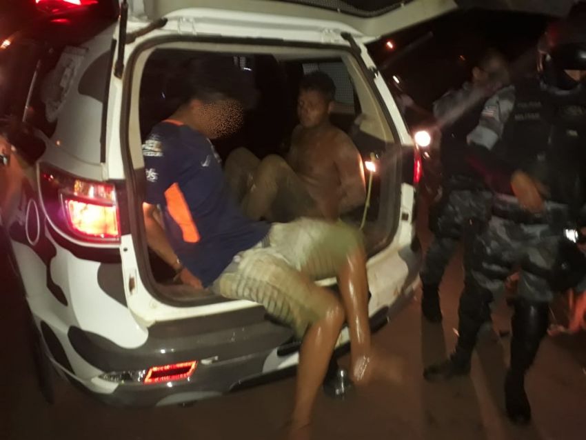 A equipe da PM em posse das informações fizeram um cerco no local e após alguns minutos de buscas, conseguiram localizar um homem identificado como Cassio Pablo e um menor de iniciais D.S.S que estavam escondidos no matagal.