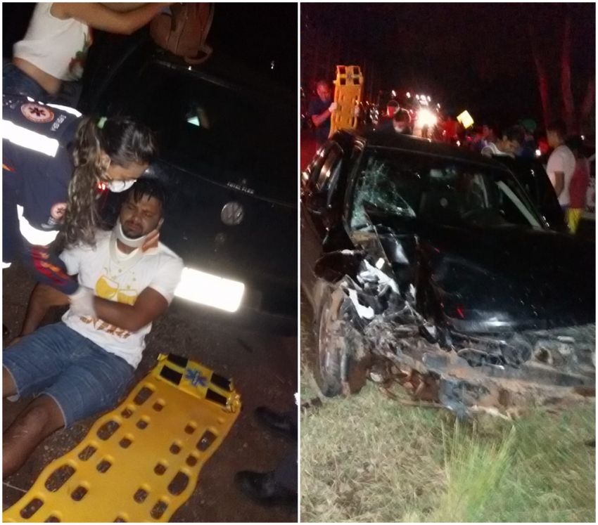 O acidente aconteceu agora a noite na BR – 010 em frente ao Aras Beatriz na saída para a cidade de Imperatriz. No gol (carro) de cor preta estava o cinegrafista e humorista Juaneyfsson (Marinete) que participa também do Programa Rádio Show de segunda a sexta-feira na Rádio Açaí FM Sorriso 104,7. A pesar da gravidade, todos saíram apenas com escoriações, apesar do táxi ter ficado de pneus pra cima.