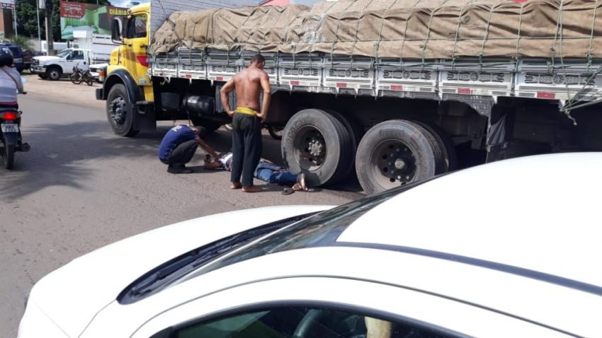 O motociclista teria perdido o controle do veículo e caiu embaixo do caminhão, sendo arrastado por alguns metros, onde ficou com toda a perna direita dilacerada.
