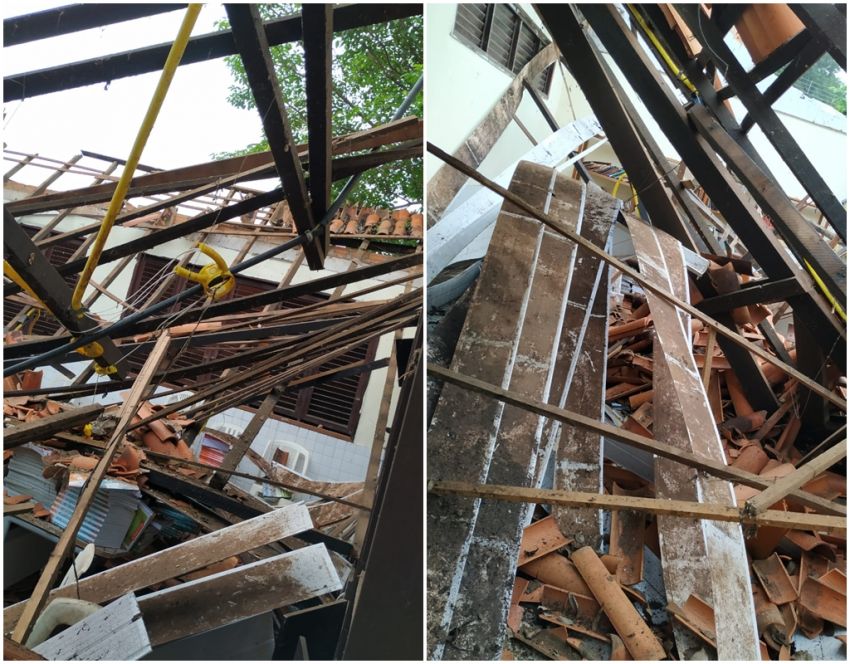 O desabamento aconteceu no sábado (20/04). O local atingido é uma sala aonde funciona a biblioteca da escola. por sorte ninguém ficou ferido.
