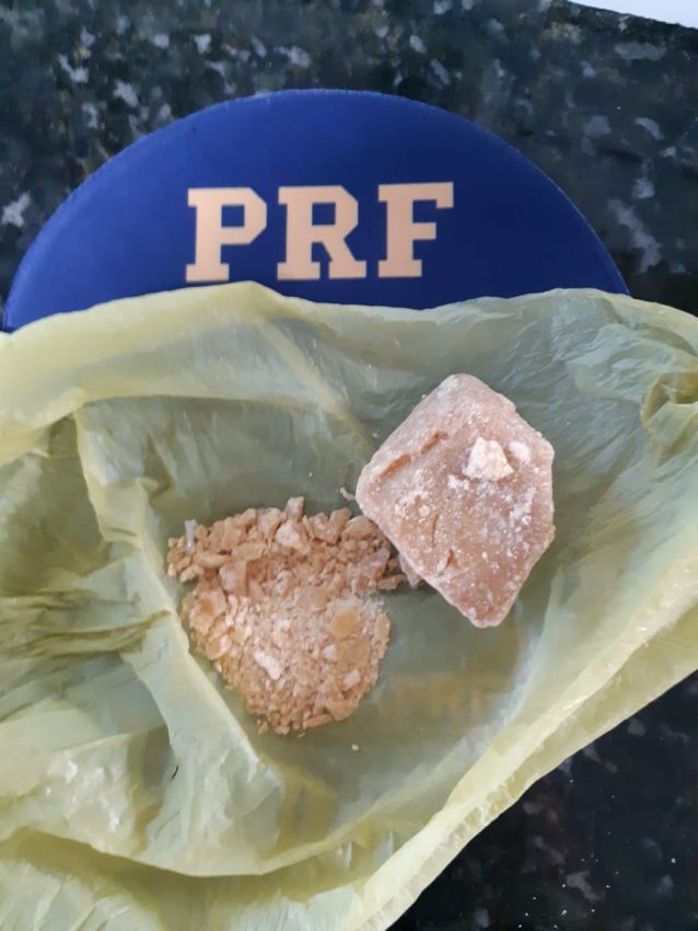 No decorrer da fiscalização, os agentes da PRF desconfiaram de um passageiro de 25 anos que estava sem qualquer documento de identidade. Após revista pessoal, foi encontrado um pacote com aproximadamente 70 gramas de substância análoga à pasta base.