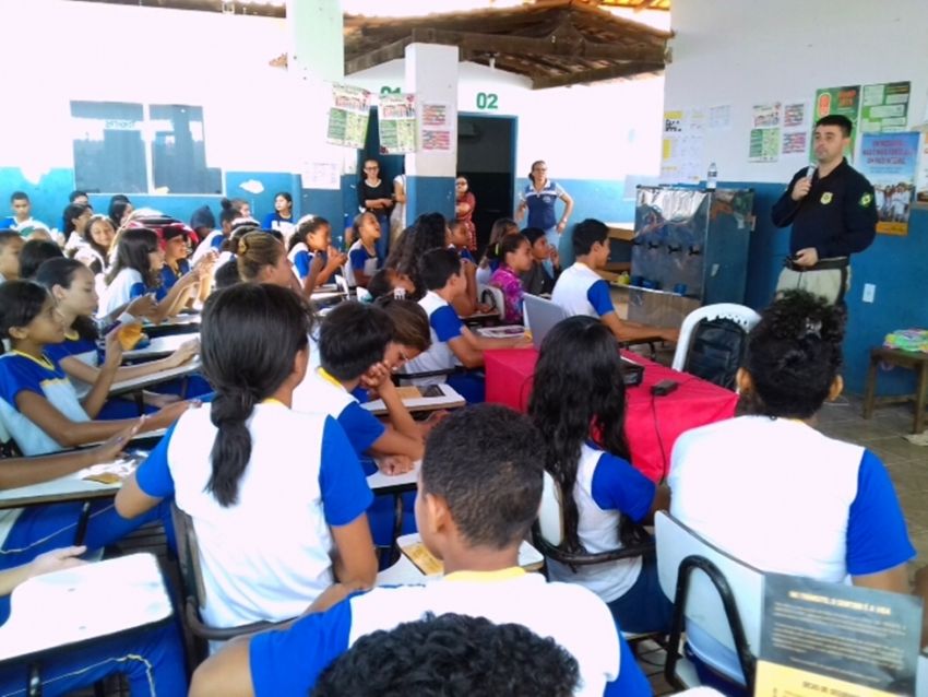 Manhã de quarta-feira, 08 de maio de 2019, a Polícia Rodoviária Federal realizou uma palestra voltada para a segurança no trânsito, com foco em motocicletas.