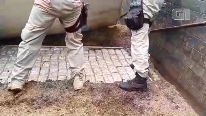 Um vídeo gravado por policiais mostra o momento em que a droga é descoberta e quando ela começa a ser contabilizada.