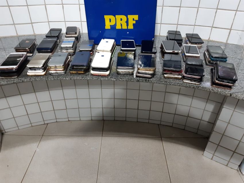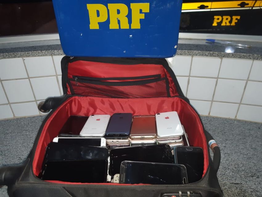 Ela transportava 121 celulares que estavam em duas malas no bagageiro de um ônibus interestadual
