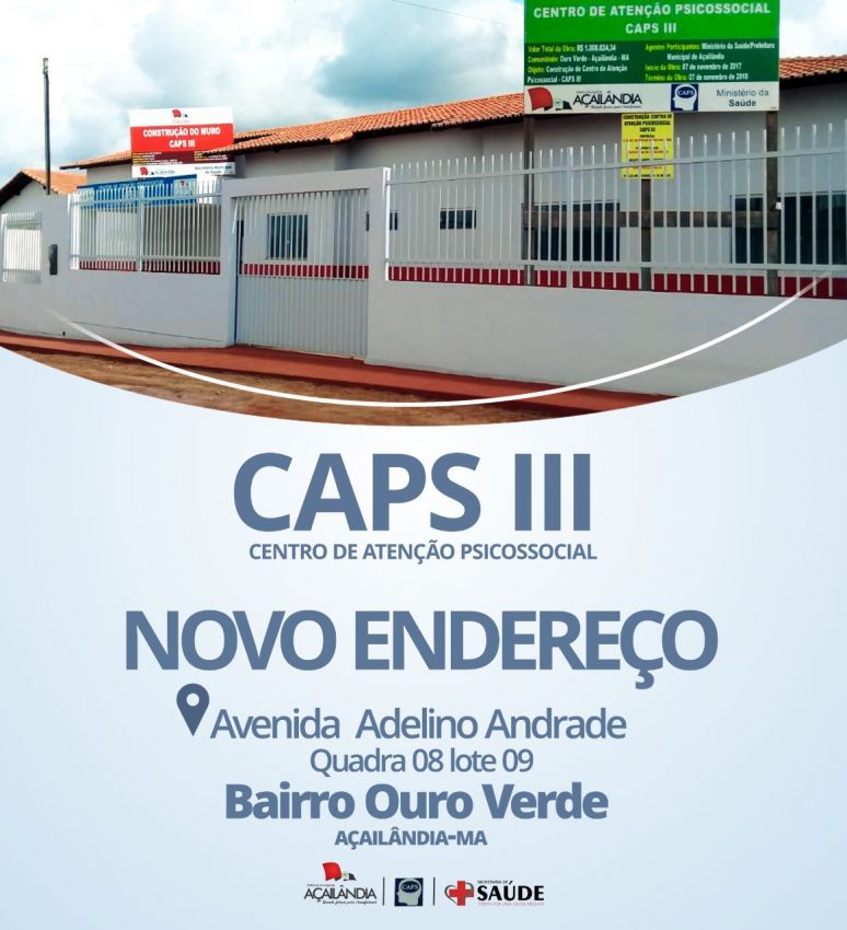 Com o novo CAPS, a Rede de Atenção Psicossocial do Município de Açailândia, passa a dispor de 03 Centros de Atenção Psicossocial. A Prefeitura trabalha para promover a reinserção social das pessoas que vivem à margem da sociedade, legitimando sempre o novo modelo de atenção à saúde e a implementação de uma rede de serviços abertos e comunitários. A iniciativa tem como principal objetivo a construção de uma sociedade justa e igualitária, pautada em valores que afirmem direitos e a dignidade dos indivíduos com os mais variados tipos de transtornos mentais e dependência química.