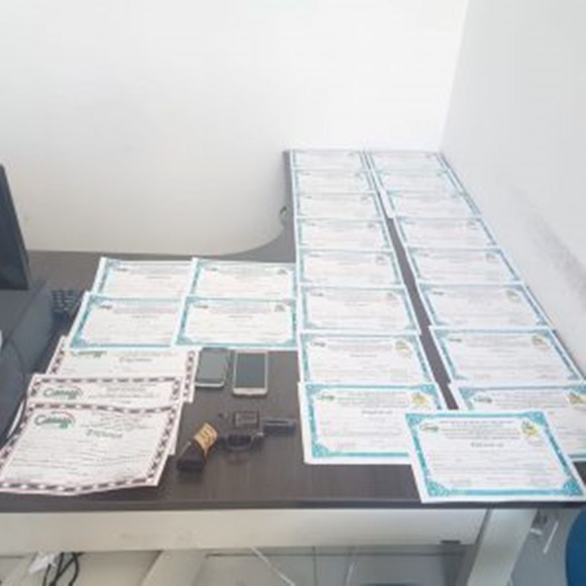 Durante a operação, a polícia encontrou diplomas assinados em branco - alguns assinados sem o curso que o aluno estaria se formando - históricos escolares assinados em branco, além de uma arma de fogo com numeração suprimida.