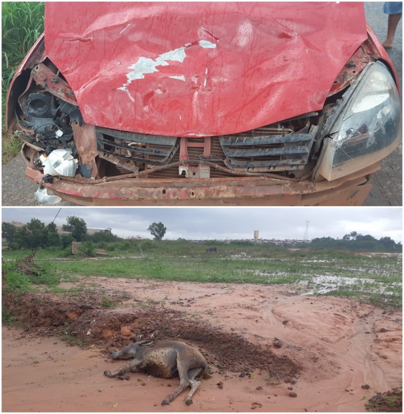 3. A terceira ocorrência se deu no km 3.1 do acesso da BR 135. Por volta das 13h50, um veículo Renault Clio vermelho colidiu com um animal na pista e deixou uma pessoa ferida, a condutora de 49 anos de idade. A força da colisão lançou o animal para fora da pista. Ele morreu no local.