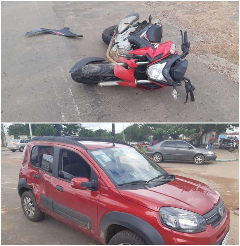 2. O segundo acidente aconteceu por volta das 10h30 desta terça-feira, no km 22 do acesso da BR 135, próximo à UFMA. Uma motocicleta vermelha colidiu transversalmente com um Fiat Uno vermelho. Duas pessoas ficaram feridas.