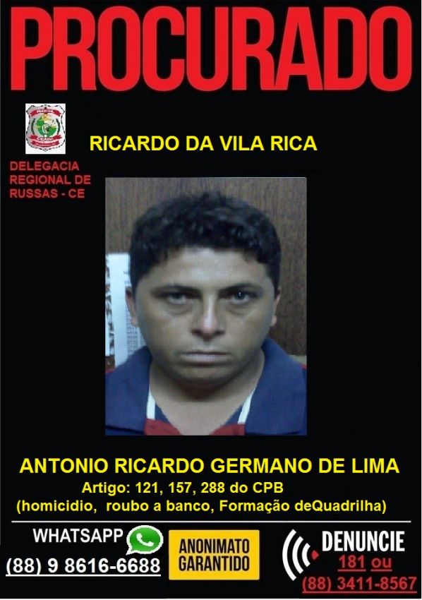 Seu nome verdadeiro é Antônio Ricardo Germano de Lima, que tem passagem por assalto a banco, homicídio e formação de quadrilha.