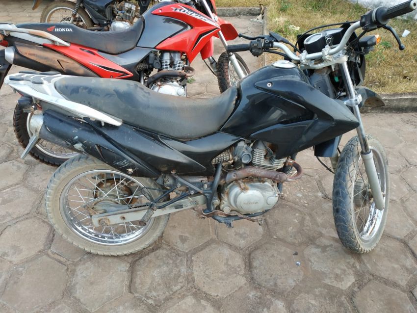 No local a PM localizou uma motocicleta Bros preta sem placa de chassi: 9c2kd0520ar089647 que o acusado teria tomado de assalto em Açailândia e teria levado a mesma para vender no assentamento, o que ele (Ronaldo) já vinha fazendo várias vezes.