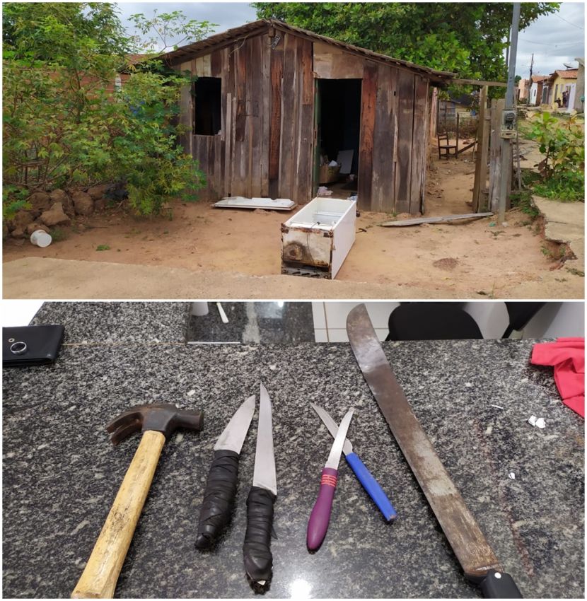 Francinaldo ao ver os policias ,se armou com várias facas e um facão. Visivelmente alterado, se recusou a sair do interior da residência. Foi preciso pedir o reforço da Força Tática e depois do uso de vários recursos a PM conseguiu conter o indivíduo e conduzi-lo para delegacia de polícia civil para os procedimentos legais.