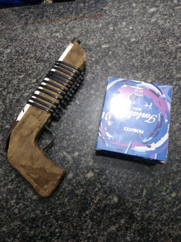 Os acusados estavam transitando pela avenida Dorgival Pinheiro, quando ao deparar com uma viatura do 26° Batalhão esboçaram nervosismo, de pronto os policiais abordaram a dupla e realizaram revista pessoal, os militares encontraram um frasco de perfume e uma arma de fabricação caseira em posse dos indivíduos.