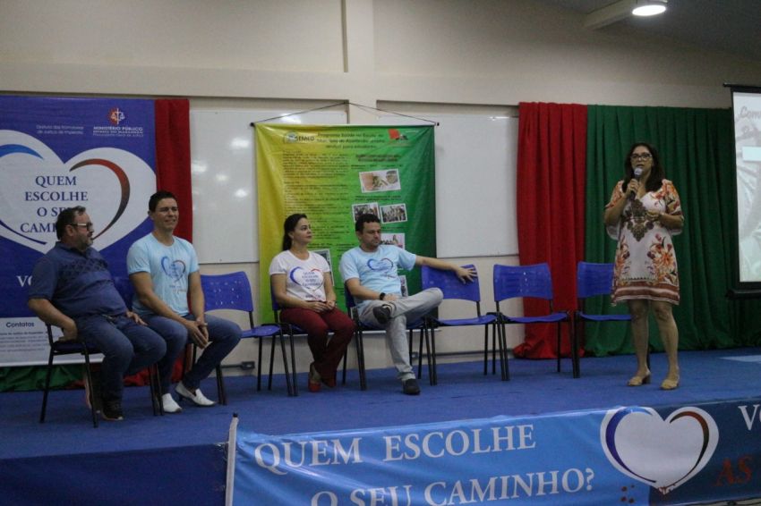 O Ministério Público em parceria com a Prefeitura, por intermédio das secretarias de Saúde, Assistência Social e Educação pelo Programa de Saúde na Escola, sob a coordenação dos promotores de justiça Sandra Fagundes Garcia e Gleudson Malheiros, titulares da 2ª Promotoria de Justiça Criminal e 2ª Promotoria de Justiça Cível de Açailândia, respectivamente, bem como a primeira dama Valéria Aquino e Sousa, promoveu uma palestra de sensibilização e prevenção ao uso de drogas em Açailândia. O evento contou com a presença do Juiz Diretor do Fórum da Comarca de Açailândia, Pedro Guimarães Junior; do Gestor Regional de Educação, Bosco Gurgel; da primeira-dama, Valéria Sousa; do Promotora de Justiça e a coordenadora da campanha, Sandra Fagundes Garcia, e do Palestrante Rodrigo Gonçalves Dias, vencedor do Prêmio Jovem Cientista.