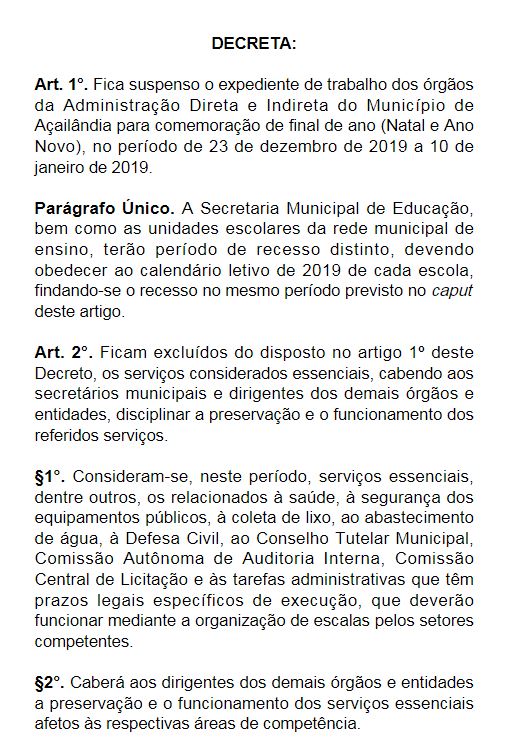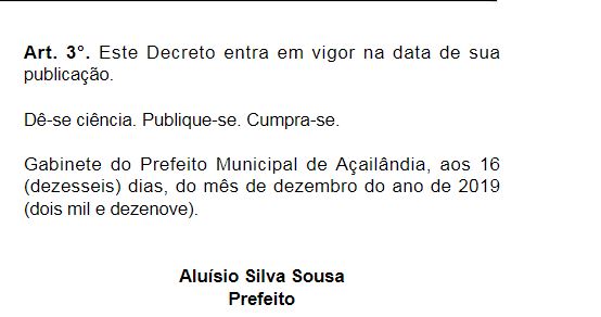 AÇAILÂNDIA - Prefeitura informa o cronograma do decreto de fim de ano veja