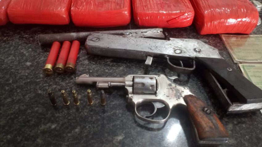 Ao iniciar a revista minuciosa foram encontrados: cerca de 6 kg de maconha prensada em tabletes, aproximadamente 130 g de maconha fracionada além de uma balança de precisão e duas armas de fogo cal. 22 e cal. 32, que ao continuar a busca pela residência foram encontradas várias peças de uma motocicleta com as características da que havia sido tomada de assalto dias antes, dentre as peças estavam o motor, amortecedores e várias outras.