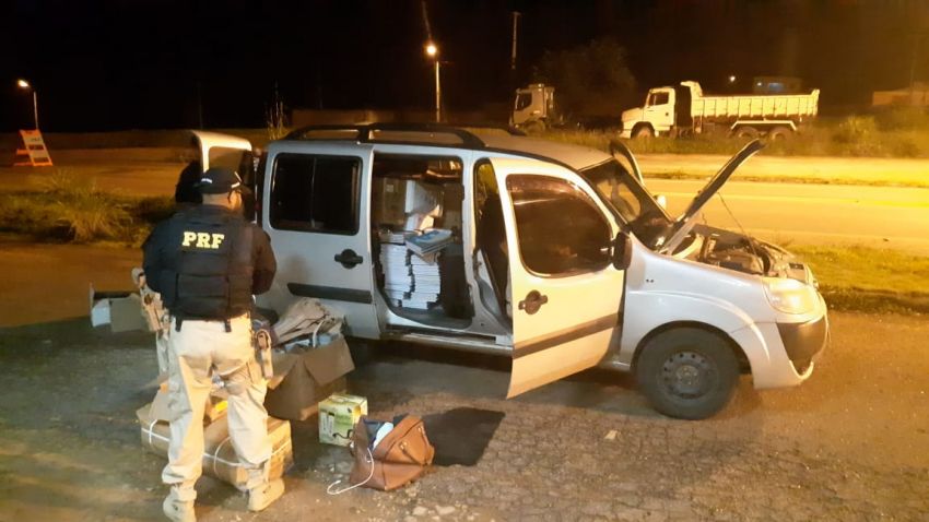 Segunda-feira (20), por volta das 03 horas, no km 667 da BR 222, foi abordado o automóvel Fiat/Doblô, de cor prata, que transportava grande quantidade de caixas em seu interior.
