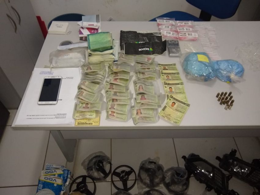 De acordo com as investigações, os suspeitos são suspeitos de adulterar o sinal que faz a identificação em veículos. Com a dupla, a polícia apreendeu várias unidades da Carteira Nacional de Habilitação (CHN), Certificados de registro e licenciamento de veículo (CRLV), 1kg de substância semelhante a cocaína, um veículo com sinais de adulteração e munições.