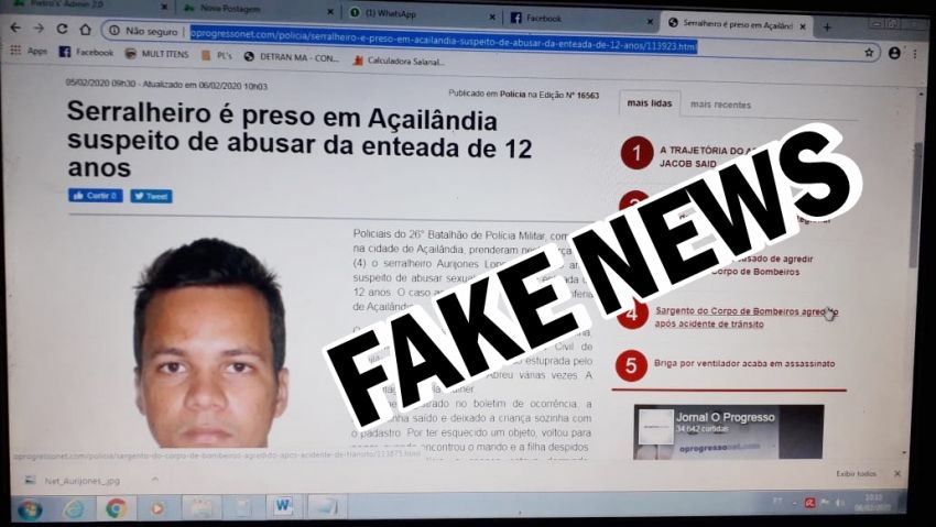 A informação foi publicada pelo Jornal O progresso no link (http://oprogressonet.com/policia/serralheiro-e-preso-em-acailandia-suspeito-de-abusar-da-enteada-de-12-anos/113923.html) em sua página policial.