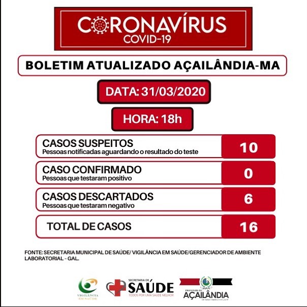 ✔ Não há casos confirmados de Covid-19 em Açailândia.
