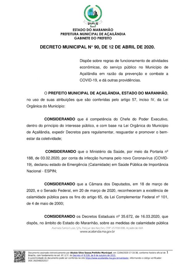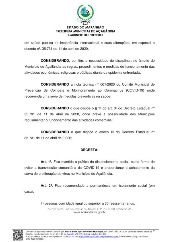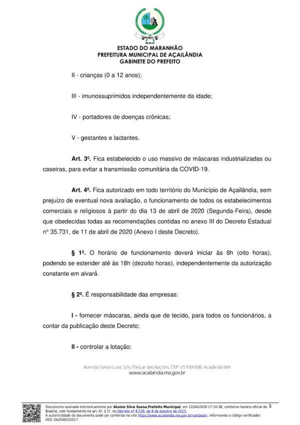 No último domingo dia 12 de Abril, o prefeito de Açailândia, Aluísio Silva Sousa tomou uma decisão que até o momento divide opiniões, o prefeito decretou a abertura do comércio e locais religiosos do nosso município.