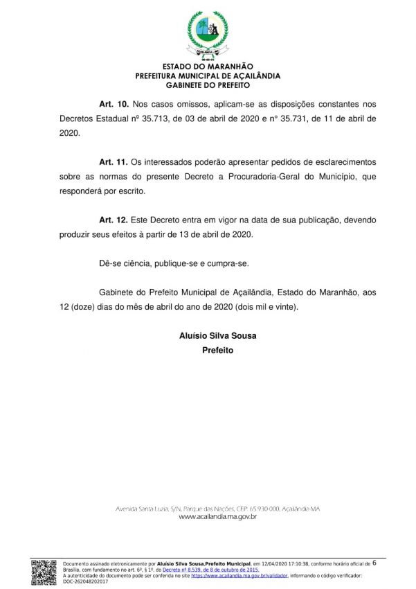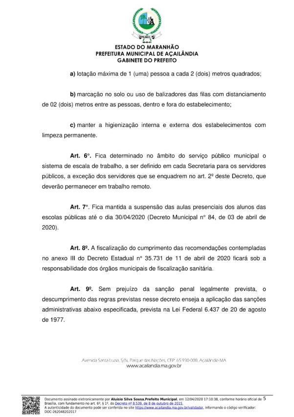 O prefeito Aluísio informou, que independente de situações políticas, a medida estava sendo planejada. Afim de evitar demais problemas, principalmente em relação a disseminação do novo Corona Vírus (COVID-19), o prefeito também informou que é fundamental o cumprimento das regras descritas no decreto.