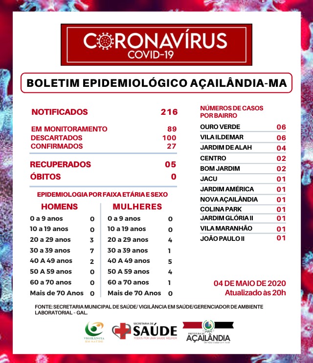 😷🦠BOLETIM EPIDEMIOLÓGICOAÇAILÂNDIA COVID-19 – 04/05🦠😷 Sem alteração hoje no número de casos confirmados