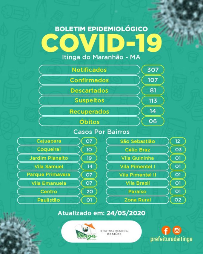 Veja abaixo o boletim sobre o COVID 19 na cidade de Itinga MA