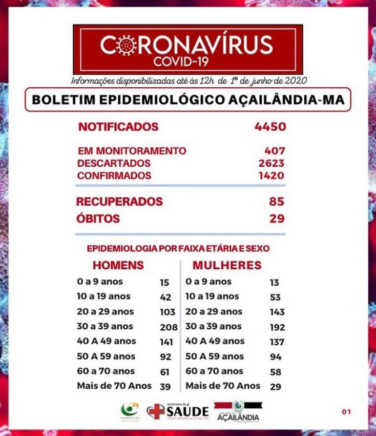 Boletim epidemiológico foi atualizado pela secretaria da Saúde (01/06) ⠀