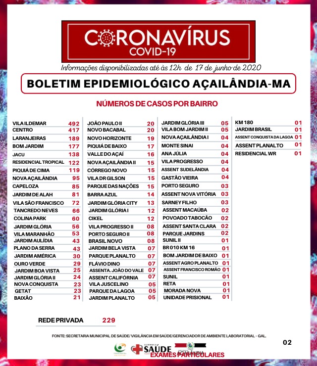 Devido a grande demanda de casos, a Secretaria de Estado de Saúde não está atualizando os dados de Açailândia.