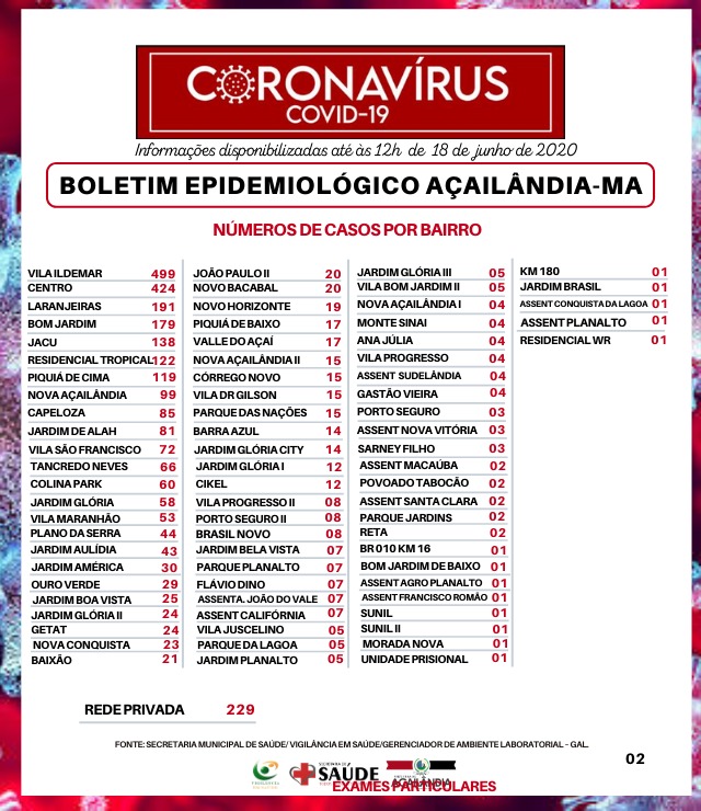 Devido a grande demanda de casos, a Secretaria de Estado de Saúde não está atualizando os dados de Açailândia.