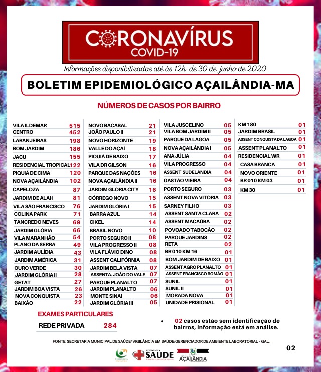 Devido a grande demanda de casos, a Secretaria de Estado de Saúde não está atualizando os dados de Açailândia.