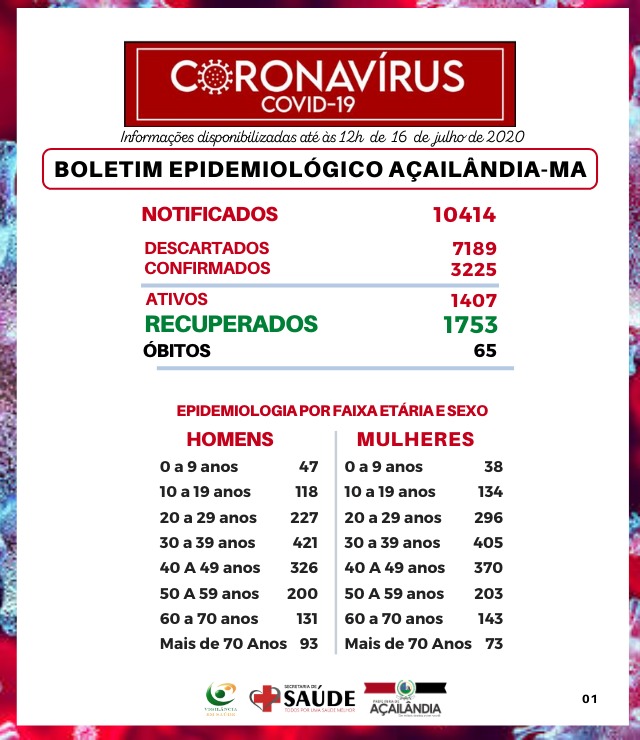 Acompanhe o boletim epidemiológico da Covid-19 em Açailândia – 16 de julho