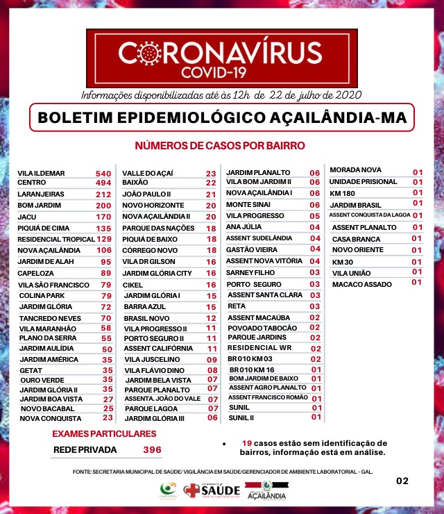 Acompanhe o boletim epidemiológico da Covid-19 em Açailândia – 22 de julho