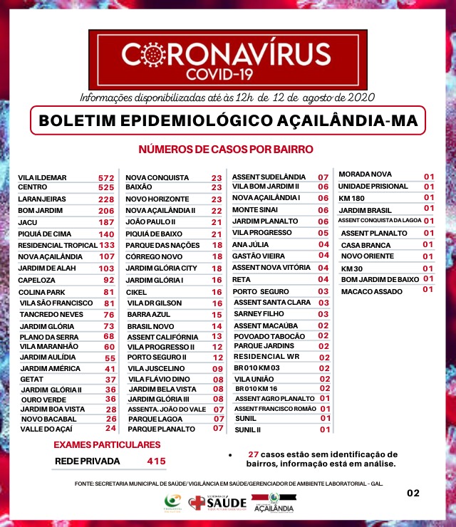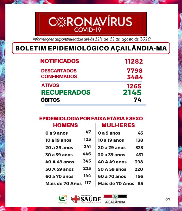 Acompanhe o boletim epidemiológico da Covid-19 em Açailândia – 12 de agosto