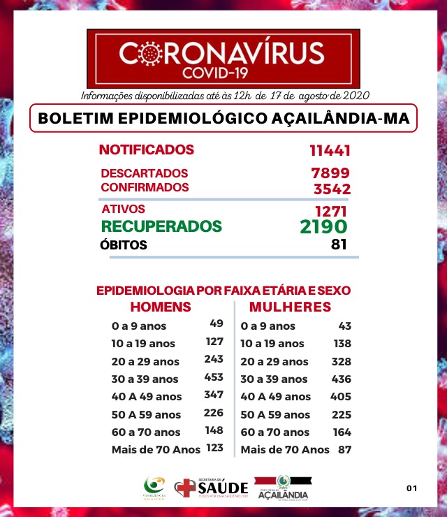 Acompanhe o boletim epidemiológico da Covid-19 em Açailândia – 17 de agosto