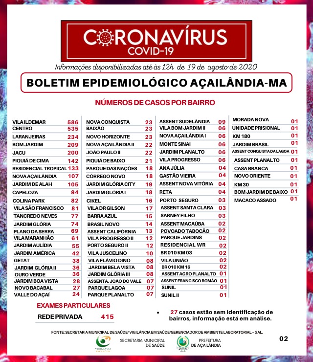 Acompanhe o boletim epidemiológico da Covid-19 em Açailândia – 19 de agosto