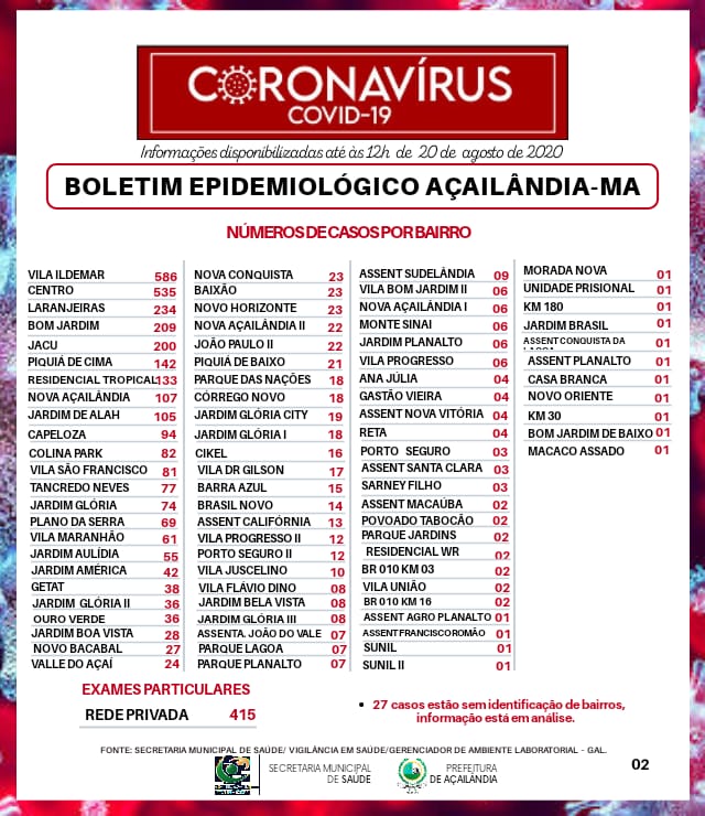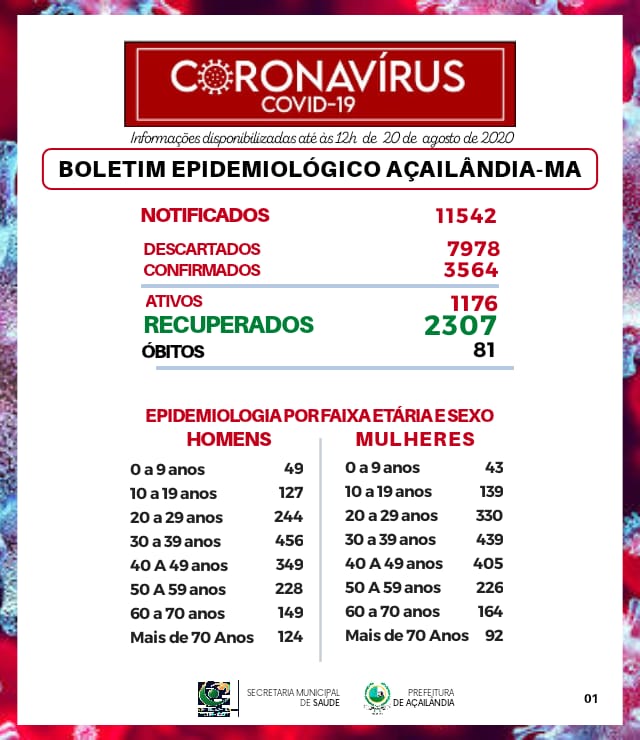 Acompanhe o boletim epidemiológico da Covid-19 em Açailândia – 20 de agosto