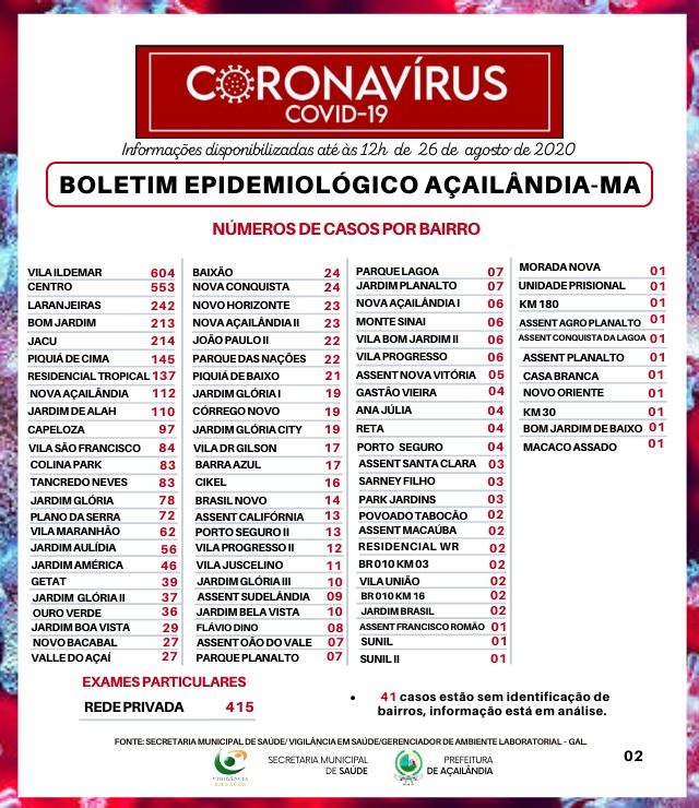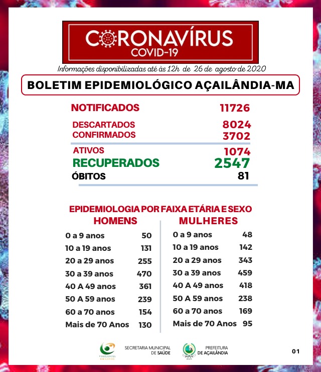 Acompanhe o boletim epidemiológico da Covid-19 em Açailândia – 26 de agosto
