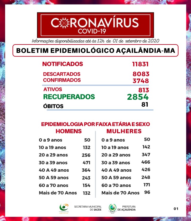 Acompanhe o boletim epidemiológico da Covid-19 em Açailândia – 1º de setembro