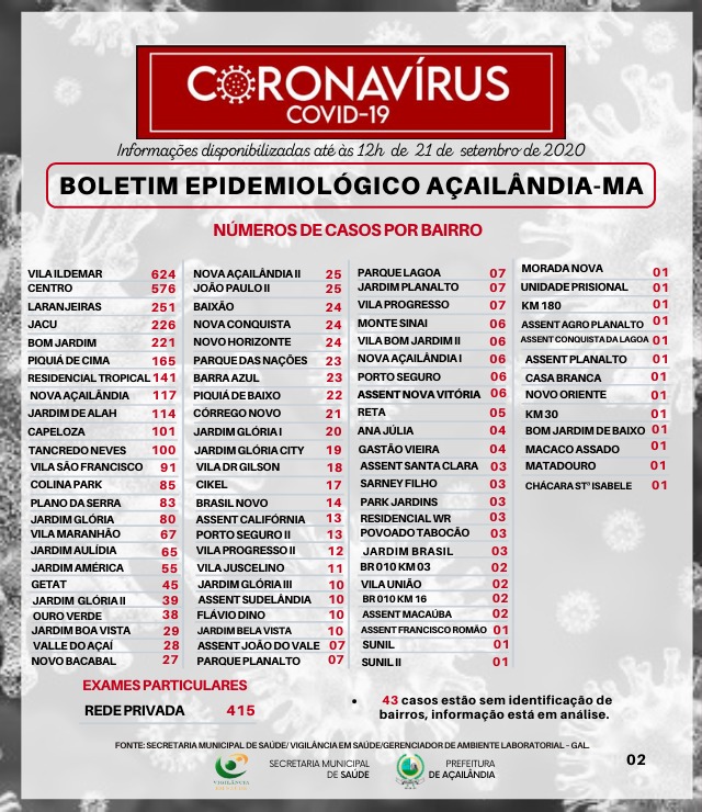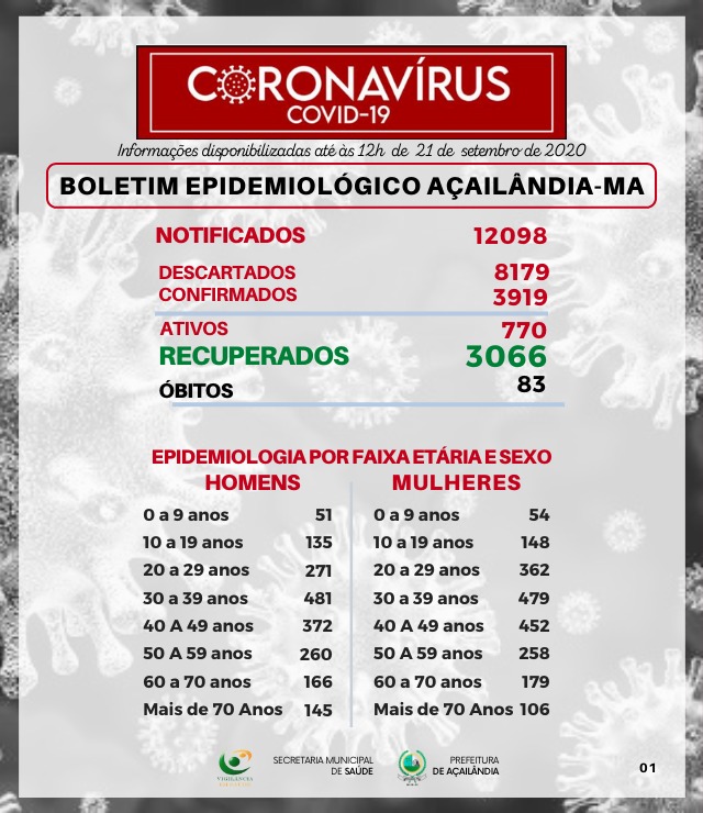 Acompanhe o boletim epidemiológico da Covid-19 em Açailândia – 21 de setembro